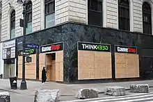 California had announced a state-wide stay-at-home order on March 19; while GameStop had originally stated to its stores it was an essential retail business, by March 20 they had instead decided to close down its California branches, while keeping most other nationwide stores open.[89][84] Following similar stay-at-home orders in New York and Illinois over the following days, GameStop announced that it would close all locations effective March 22, with selected locations continuing to offer contact-free curbside pickup (where an employee, wearing either gloves or a bag over their hands, would slip the customer's order through the front door, remaining behind the glass)[90] and home delivery.[91] In early April, a location in Dorchester, Boston received a nuisance citation by local police, who deemed the curbside pickup a violation of the Massachusetts stay-at-home order. GameStop subsequently ceased offering curbside pickup in the state.[90][92]
