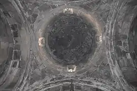 The interior pendentives under the cylindrical dome in the interior are decorated with geometrical ornaments such as stars, circles and squares, plants such as spiral shoots, palmettes.[3] Each side of the pendentive has high reliefs depicting head of a sheep, heads of a bull and anthropomorphic figures. According to Yakobson, sheep and bulls were considered holy animals in this period and are used as protectors of the structure.[45]
