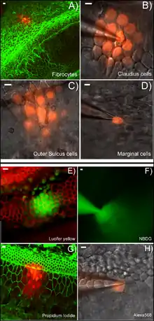 - Hama K, Saito K (February 1977). "Gap junctions between the supporting cells in some acoustico-vestibular receptors". J. Neurocytol. 6 (1): 1–12. doi:10.1007/BF01175410. PMID 839246. S2CID 30090247.