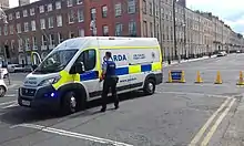 Pearse Street Divisional Roads Policing Unit is equipped with a Fiat Ducato van for transporting cones. The Dublin Metropolitan Region Roads Policing Unit also operates a single marked Ford Transit automatic speed limit enforcement photo radar van.