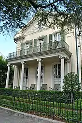 - Claiborne Cottage, 2727 Prytania Street, a raised, center-hall, Greek Revival cottage, built in 1857 by John Vittie for Sophronie Claiborne Marigny, daughter of Louisiana's first Governor, Lady of French Queen Amelie's court, and wife of Mandeville de Marigny, a prominent political and military figure. After several subsequent owners, the Society of Redemptorists purchased the cottage in 1923 with the intention of building a church in its place. Instead, the structure served as Bon Secours Grammar School 1923–1925, Redemptorist High School 1925–1929, Sisters of Mercy Convent 1929–1953, and Provincial House of the Redemptorist Vice Provincialate 1953–1955. The house was restored as a private residence in 1980. In 1995 it was acquired by the Rice family. (Marker by Orleans Parish Landmarks Commission, 1995)[15]