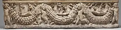 The garland-bearer design was extremely popular in the Mediterranean.[1] It first appeared at the end of the Hellenistic period, and its popularity expanded during the Roman period.[1] The design reached a peak of popularity in the 2nd century CE, adorning sarcophagi made in Asia Minor to be sold in Rome.[1]