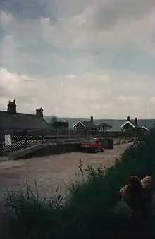 The signal box, a 4c type as designed and built by the Midland Railway Company, was installed in June 1910 and is made from timber with a Welsh slate roof. It was given grade II listed status in 2013.[8] The box was significant in the 1910 Hawes Junction crash, which led to the introduction of track circuits to prevent that type of tragedy happening again. Its heritage status was awarded partly due to its involvement in the accident. In June 2020, Network Rail applied to the Yorkshire Dales National Park Authority to carry out repairs on the decaying structure.[9]
