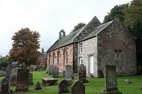 The kirk, and manse (1820), are situated at the eastern end of the village. The north-west corner of the church is 12th century; the south wall has a sundial upon it dated 1633, and the north aisle is of 1677. In 1829 the contractor (and possibly the designer) John Swinton, from Haddington, completely remodelled the church in 1829, which included four Gothic windows and the Western belfry.