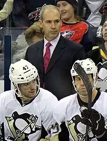 ![]() Agnew as an assistant coach with the Pittsburgh Penguins. | |||
