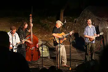 Gary Ruley and Mule Train serves as a vehicle for bringing together the best musicians in the area for specific shows (or recordings). As Gary states, "There's so many great pickers who live in or near Rockbridge County that it's not difficult to get a bunch of friends together and make music."[1] The musicians who appear with Ruley come with long musical pedigrees and from a number of other groups they've formed themselves. Will Lee's father joined the legendary Stanley Brothers as lead guitarist after playing with Bluegrass Tar Heels, special protegées of Bill Monroe.[4] David and Danny Knicely's grandfather, A. O. Knicely, played old time guitar, mandolin, and fiddle as leader of the Knicely Family Band.[5] Danny and Will perform as a duo. Larry Keel, "arguably one of the greatest flat-picking guitarists in the world",[1] has headed up The Larry Keel Experience—now renamed Larry Keel & Natural Bridge—and also performs in Keller and the Keels with his wife Jenny. Will Lee, Larry Keel, and Danny Knicely were all founders of legendary Magraw Gap, a band that took first place at the Telluride Bluegrass Festival in 1995.[4] Brennan Gilmore originated Walker's Run, Kantara, and most recently Borden Grant. Ann Marie Calhoun (née Simpson) has toured with Jethro Tull's Ian Anderson and performed with Ringo Starr. Her sister Mary Simpson also plays fiddle and sings with the group when not performing with her own Whisky Rebellion. She joined Yanni in September 2010, for his South American tour, also performing with the composer in Puerto Rico.