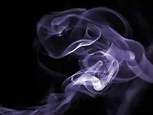 Gas particles are widely separated from one another, and consequently, have weaker intermolecular bonds than liquids or solids. These intermolecular forces result from electrostatic interactions between gas particles. Like-charged areas of different gas particles repel, while oppositely charged regions of different gas particles attract one another; gases that contain permanently charged ions are known as plasmas. Gaseous compounds with polar covalent bonds contain permanent charge imbalances and so experience relatively strong intermolecular forces, although the molecule while the compound's net charge remains neutral. Transient, randomly induced charges exist across non-polar covalent bonds of molecules and electrostatic interactions caused by them are referred to as Van der Waals forces. The interaction of these intermolecular forces varies within a substance which determines many of the physical properties unique to each gas.[9][10] A comparison of boiling points for compounds formed by ionic and covalent bonds leads us to this conclusion.[11] The drifting smoke particles in the image provides some insight into low-pressure gas behavior.