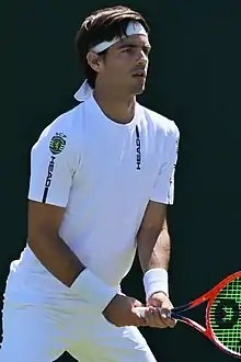 Gastão José Ministro Elias (Portuguese pronunciation: [gɐʃˈtɐ̃w eˈliɐʃ];[2] born 24 November 1990) is a Portuguese professional tennis player, who competes on the ATP World Tour. He became the fifth Portuguese tennis player to break into the top 100 of the Association of Tennis Professionals singles rankings.[3] In October 2016, he reached a career-high singles ranking of world No. 57 to become the second-highest-ranked Portuguese player, after João Sousa (No. 28).[4]
