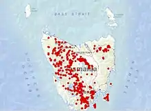 Its distribution is most abundant in the western side of Tasmania, (to the west of Tylers line), on ancient fold province soils, where wet forests and alpine vegetation dominate. Other patches of distribution, to the east of Tyler's line, are predominantly alpine areas, in the north east, south east and central north, on younger fault province soils.[3]