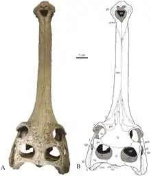 Gavialis is a genus of crocodylians that includes the living gharial Gavialis gangeticus and one known extinct species, Gavialis bengawanicus.[1] G. gangeticus comes from the Indian Subcontinent,[2] while G. bengawanicus is known from Java. Gavialis likely first appeared in the Indian Subcontinent in the Pliocene and dispersed into the Malay Archipelago through a path called the Siva–Malayan route in the Quaternary. Remains attributed to Gavialis have also been found on Sulawesi and Woodlark Island east of the Wallace Line, suggesting a prehistoric lineage of Gavialis was able to traverse marine environments and reach places possibly as far as western Oceania.[3]
