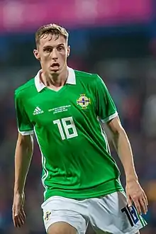 During the 2017–18 season he scored 23 goals in 20 games,[5] winning his third NIFL Premiership league title[6] and also the County Antrim Shield[7] with Crusaders, and was voted the Ulster Footballer of the Year award for 2017–18[8] and also the Northern Ireland Football Writers' Association Player of the Year award for 2017–18.[9]