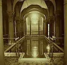 In London, the Savoy Turkish Baths at 92 Jermyn Street became a favorite spot (opening in 1910 and remaining open until September 1975).[14] The journalist A.J. Langguth wrote: "...[The baths at Jermyn Street] represented a twilight arena for elderly men who came to sweat poisons from their systems and youths who came to strike beguiling poses in Turkish towels... although they were closely overseen by attendants, they provided a discreet place to inspect a young man before offering a cup of tea at Lyons."[15] Regulars included Rock Hudson.[16][17]