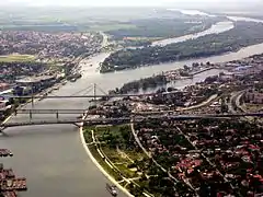 The Gazela Bridge (Serbian: Mост Газела, romanized: Most Gazela) is the most important bridge over the Sava river in Belgrade, the capital of Serbia. It is a part of the city highway and it lies on European route E75, on the highway passing through the wider city center, connecting Belgrade with Niš to the south, and Novi Sad to the north. The bridge was designed by a group of engineers led by Milan Đurić, and built by the Mostogradnja company.