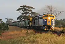 The Geelong–Ballarat railway line is a broad-gauge railway in western Victoria, Australia between the cities of Geelong and Ballarat.[1] Towns on the route include Bannockburn, Lethbridge, Meredith, Elaine and Lal Lal. Major traffic includes general freight from the Mildura line, and grain.