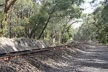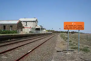 In 1995 the track between North Geelong and Gheringhap was converted to dual gauge as part of the gauge standardisation of the Melbourne–Adelaide railway.[5] It was also at this time that the seven-kilometre section of double track from Ballarat to Warrenheip was converted to two parallel and independent lines, one running to Geelong and one to Melbourne, with the junction at Warrenheip being abolished.[8] In 2008 track upgrading work commenced on the line as part of the rail freight improvements to the Mildura line.[9] Improvements included installing gauge-convertible sleepers, the dual-gauging of level crossings, and drainage and ballast renewal.[9] Upgrade work was completed in 2009.[9]