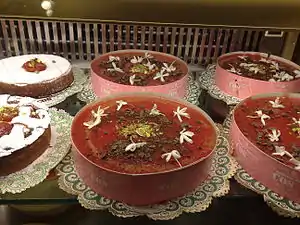It is commonly considered an inheritance of Arab influence, and a dessert derived from the Persian fālūdhaj.[3][4] Basic ingredients are watermelon pulp, sugar (or honey) and starch, while pistachios, candied fruit, cinnamon and rose water are often added.[3][5]