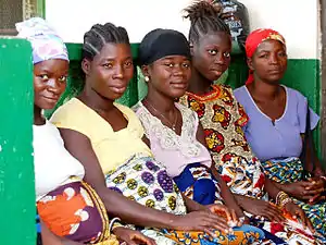 The fertility rate has been slowly declining from 6.9 births per woman in 1984 to 5.4 in 2007 and 5.2 in 2012.[25] Although fertility rates are decreasing in Liberia, its population growth rate is 2.6%, meaning that Liberia is one of the fastest growing nations in Africa.[26] This growth is caused by a large percent of the female population being of reproductive age, along with early marriage practices (approximately 48% married by age 18 in 2007) and widespread polygamy, especially in rural areas.[27] Contraceptive use is low among women from poor households and unmarried women, with an estimated prevalence rate of 11%.[28]