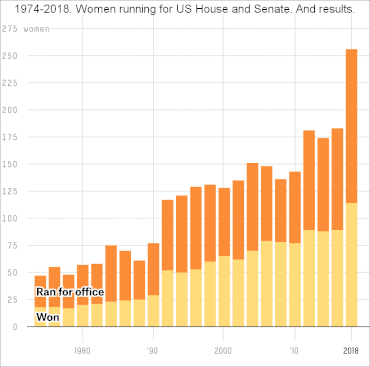 The pay gap between Caucasian women and Caucasian men is substantial. In 2018, the median weekly pay for all Caucasian women with full-time job was $789 while the median weekly pay for men was $973. These numbers depict that on average, white women make around 81% of what white men do. While these numbers clearly describe the inequality between white men and white women, the pay gap between them is much closer than other races including Hispanic, Native American, American Indian and Native Hawaiian.[66] New awareness of gender inequality in the workplace has caused the annual earnings for women to increase by 1.6% from 2016 to 2017. While women's median annual earnings may not increase significantly every year, it is generally on an upward trend.[67]