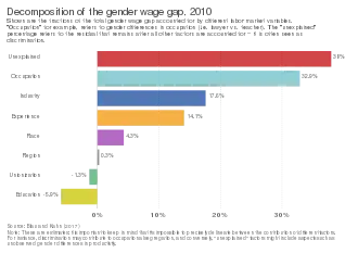 Some variables that help explain the non-adjusted gender pay gap include economic activity, working time, and job tenure.[26] Gender-specific factors, including gender differences in qualifications and discrimination, overall wage structure, and the differences in remuneration across industry sectors all influence the gender pay gap.[27]