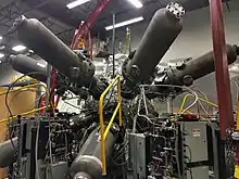 Compact toroid plasmas are formed by a coaxial Marshal gun (a type of plasma railgun), with magnetic fields supported by internal plasma currents and eddy currents in the flux conserver wall.[33] The firm has built and operated more than a dozen plasma injectors.[34] These include large two-stage injectors with formation and magnetic acceleration sections (dubbed "PI" experiments), and three generations of smaller, single-stage formation-only injectors (MRT, PROSPECTOR and SPECTOR).[18] In 2016, the firm published research demonstrating spheromak plasma lifespans of up to 2 milliseconds and temperatures in excess of 400 eV on its SPECTOR generation of injectors.[18] As of December 2017, the PI3 plasma injector was operational and held the title as the world's most powerful plasma injector, ten times more powerful than its predecessor.[35]