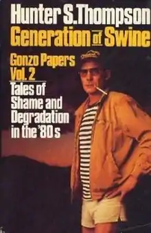 Gonzo Papers, Vol. 2: Generation of Swine: Tales of Shame and Degradation in the '80s is a book by the American writer and journalist Hunter S. Thompson, originally published in 1988. The book contains 100 of Thompson's columns that appeared from September 1985 to November 1988 in the San Francisco Examiner, which discuss the politics and culture of the 1980s, with significant coverage of the Iran-Contra Affair, and Gary Hart's run for president.