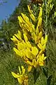 It is a variable deciduous shrub growing to 60–90 centimetres (24–35 in) tall by 100 cm (39 in) wide, the stems woody, slightly hairy, and branched. The alternate, nearly sessile leaves are glabrous and lanceolate. Golden yellow pea-like flowers are borne in erect narrow racemes from spring to early summer. The fruit is a long, shiny pod shaped like a green bean pod.[3]