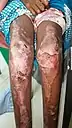 Epidermolytic hyperkeratosis is a rare genodermatosis which is also referred to as disorder of cornification type 3 and bullous congenital ichthyosiform erthroderma, affecting almost 1 per 200,000 - 300,000 people.[18] They also stated that its clinical manifestations often begin at birth with large rashes all over the body, and the patients’ skin will be so sensitive that even mild wounds can cause blisters and peeling. Potential complications of this disease include electrolyte disturbances, sepsis and so on.[18]