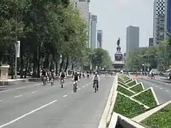 The implementation of green spaces into urban projects like public parks, roof gardens, protected areas, vegetation in public infrastructure or even private gardens help clean the air, improve human wellbeing, reduce noise, increase the attractiveness of crammed communities and foster interaction across social groups. Compact developments with an emphasized verticality are another approach to creating active spaces with efficient energy use, less driving distances, reduced emergency response time, mixture of homes, services and jobs.[50] Respected urbanists such as Jeff Speck argue for the walkability of cities as a solution for sustainable cities that work to stop climate change, foster community engagement, create local diversity and self-sufficiency with attainable housing, schools, parks and services that are demand induced and interconnected.[51] Other suggestions of urbanism are to adapt to the already concentrated peripheries by decentralizing jobs and amenities, by creating new points of interest.[52][53] Recent projects to incorporate sustainability can be seen in Santa Fe with the creation of La Mexicana Park, renovations to sections of the Chapultepec public park, green infrastructure in main roads such as Periferico and Reforma and the adoption of the Bando 2 policy that restricted urban growth through strict permits and housing loans by INFONAVIT (the national housing institute of workers).[54][55] The definition of cultural corridors like Regina St where diverse groups coexist in a mixture of residential and commercial developments is also a good example.[56]