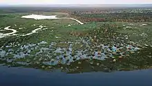In the semiarid Northeast, caatinga, a dry, thick, thorny vegetation, predominates.[1] Most of central Brazil is covered with a woodland savanna, known as the cerrado (sparse scrub trees and drought-resistant grasses), which became an area of agricultural development after the mid-1970s.[1] In the South (Sul), needle-leaved pinewoods (Paraná pine or araucaria) cover the highlands; grassland similar to the Argentine pampa covers the sea-level plains.[1] The Mato Grosso swamplands (Pantanal Mato-grossense) is a Florida-sized plain in the western portion of the Center-West (Centro-Oeste).[1] It is covered with tall grasses, bushes, and widely dispersed trees similar to those of the cerrado and is partly submerged during the rainy season.[1]