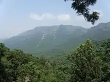 - Vindhya range, lies north of Satpura range and east of Aravali range, runs across most of central India, extending 1,050 km (650 mi).[22] The average elevation of these hills is from 300 to 600 m (980 to 1,970 ft) and rarely goes above 700 metres (2,300 ft).[22] They are believed to have been formed by the wastes created by the weathering of the ancient Aravali mountains.[28] Geographically, it separates Northern India from Southern India. The western end of the range lies in eastern Gujarat, near its border with Madhya Pradesh, and runs east and north, almost meeting the Ganges at Mirzapur