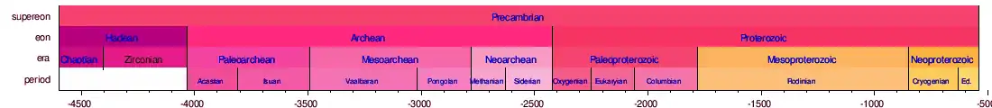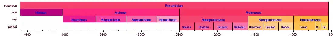 | Supereon | Eon | Era | Period[lower-alpha 2] | Epoch | Age[lower-alpha 3] | Major events | Start, million years ago[lower-alpha 3] |