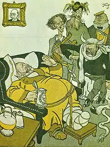 Schönerer was addressed by his supporters as the "Führer," and he and his followers also used the "Heil" greeting, two things Hitler and the Nazis later adopted.[10] Schönerer and his followers would often meet during the summer and winter and celebrate German history and listen to German battle songs. Schönerer told his followers to prepare for a battle between Germans and Jews; he said "If we don't expel the Jews, we Germans will be expelled!"[9]