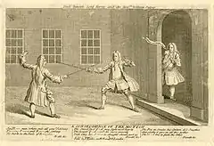Dumbarton stayed in France until 1678, apart from a short period during the 1664-67 Second Anglo-Dutch War when his unit was based at Chatham dockyard. The diarist Samuel Pepys met him in Rochester and recorded that "Here in the streets, I did hear the Scotch march beat by the drums before the soldiers, which is very odde."[10] In 1667, the regiment was accused of looting after the Medway Raid and ordered back to France; while awaiting transport, over 700 of the 1,500 men deserted.[11] In October 1669, Dumbarton was so badly wounded in a duel his death was reported in the newspapers.[12]