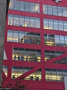 On the evening of June 2, hundreds of protesters gathered throughout the city. The protest began as a "peace rally" outside of the middle school, but protesters clashed with police outside of the city police's headquarters by nightfall. Protesters threw water bottles and fireworks, while police deployed tear gas. Several businesses were damaged or looted, including a Dunkin' Donuts that was broken into and set on fire.[22] Both Massachusetts State Police and National Guard forces were deployed to aid the city police, and the confrontation resulted in the MBTA Commuter Rail bypassing Brockton station.[23][24]