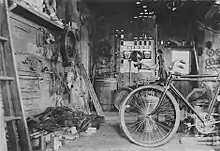Foss returned to Sherbrooke at the age of 18 and opened up his own shop, offering machining, blacksmithing, and bicycle repair.[6] Foss’ first initiative was to engineer a 52-volt boat motor. This motor was mounted to the top of the rudder with a bicycle chain running to the propeller.[7] He made thirty small storage batteries, which were stored under the seat. The motor was very quiet and worked well for him, as he traversed the Magog and St Francis rivers.[7]