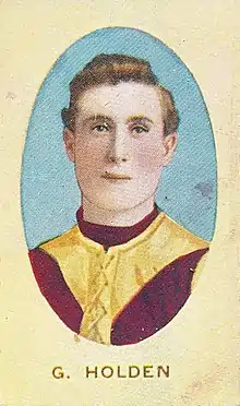 Holden was both a centreman and wingman during his career with Fitzroy, which began in 1908. He was club champion in his debut season, winning the best and fairest award for the second time in 1915. One of Fitzroy's best in their 1913 premiership,[1] Holden was named as the club's coach three years later and was a premiership player again in his first year in the role. He also captained the club in 1917 and 1918 while remaining coach but had to retire at the start of the 1919 season after suffering a serious knee injury.