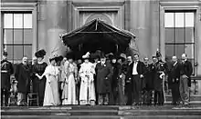 When King Edward died in 1910, Holford was equerry-in-waiting to Queen Alexandra and extra-equerry to King George.[7] The photograph of the Royal Party of Edward and Alexandra shows George (far left) in uniform.
