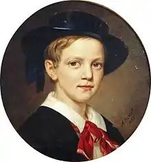 George first met Grand Duchess Olga Constantinovna of Russia in 1863, when she was 12 years old, on a visit to the court of Tsar Alexander II between his election to the Greek throne and his arrival in Athens. They met for a second time in April 1867, when George went to the Russian Empire to visit his sister Dagmar, who had married into the Russian imperial family. While George was privately a Lutheran,[31] the Romanovs were Orthodox Christians like the majority of Greeks, and George thought a marriage with a Russian grand duchess would re-assure his subjects on the question of his future children's religion.[32] Olga was just 16 years old when she married George at the Winter Palace in Saint Petersburg on 27 October 1867. After a honeymoon at Tsarskoye Selo, the couple left Russia for Greece on 9 November.[33] Over the next twenty years, they had eight children: