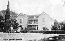 What the visitor sees in the George museum today has grown from the private collections of one man, Charles Sayers. He was the owner and long-time editor of the George & Knysna Herald, a newspaper established by his parents in 1881. Sayers collected and preserved all aspects of his hometown's history, with a specialist interest in old mechanical musical instruments.[1] In 1967 he opened his "Mini Museum" to the public, housed in a single room adjoining a café in Courtenay Street. The people loved it and much encouraged by local authorities he moved to the first George Town House – the administrative building next to the market square which dated back to 1847. By now the Sayers Museum had attracted the attention of officialdom and barely six months after the move it attained provincial aided museum status as a fully-fledged cultural history museum for the region, with indigenous timber and its allied industries as its main theme. The growing popularity led to another move, this time to the building, which had been the original drostdy (magistrate’s residence and office) in the young town. The original "Mini Museum" has been re-created within the present George Museum.[1] Adrian van Kervel, the first magistrate built the building in 1812-1815 as the Drostdy (residency). In 1826 it burnt down but was re-built. It became the legendary Victoria hotel in the late 19th century until it was sold to the George Municipality in 1972. In 1976 the museum was established here. The Drostdy or now the museum has amazing exhibitions on display. There are examples of the flourishing local Timber industry, old timber tools, implements, a yellowwood woodcutter’s cottage and an outdoor selection of labeled indigenous trees are on display.[2]