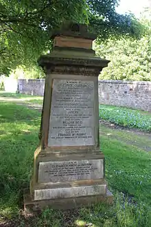 He is buried in Warriston Cemetery in north Edinburgh.[1] The grave lies close to the sealed east gate, behind the large monument to the poet Alexander Smith. He is buried with his wife, three sons, and mother (who died last).