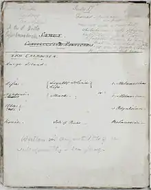 The boat hit a rock on landing and, rather than wait for its repair, some of the party, including Selwyn and Cotton, set sail for New Zealand on the brig Bristolian on 19 May. They arrived in Auckland on 30 May.[6] After spending some time as guests of Captain William Hobson, the first Governor of New Zealand, Selwyn and Cotton set sail on 6 June on the schooner Wave to visit the mission stations on the Hauraki Gulf, then north to the Bay of Islands. where he arrived on 20 June.[7][8] Amongst the party was a clerk, William Bambridge, who was also an accomplished artist and was later to become photographer to Queen Victoria.[9]
