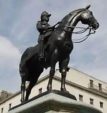 White became Governor of Gibraltar in May 1900 and,[34] in that role, was promoted to full general on 9 October 1900 and to field marshal on 8 April 1903.[35][36] In 1905 he was appointed to a Commission of Inquiry into contracts placed with private contractors during the Second Boer War;[37] he was appointed a Member of the Order of Merit later that year.[38] He was Governor of the Royal Hospital Chelsea from 17 June 1905[39] until his death there on 24 June 1912.[40] He was buried at Broughshane, a village in County Antrim, Northern Ireland.[9] A statue of White is currently located at Portland Place, London,[41] while the Sir George White Memorial Flute Band still operates in Broughshane, Ballymena.[42]