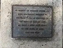 A small plaque was also installed on the ground near the memorial, which reads "In honor of George Winne Jr. Who immolated himself in Revelle Plaza in protest of the Vietnam war in 1970. He held a sign that read 'In the name of God, end the war'".