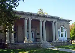 It was built in 1917 as local headquarters for the Women's Christian Temperance Union (WCTU), with money from local benefactor John R. Hunt. His intention was that the building, a neoclassical structure designed by Frank Estabrook of Newburgh, serve as both rented private office space to provide the building with income, and a public community center.[2][3]