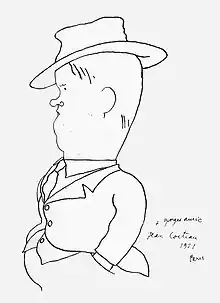 Georges Auric began his musical career at a young age, performing a piano recital at the Société musicale indépendante at the age of 12. Several songs that he had written were then performed in the following year by Société Nationale de Musique.[2] Along with his early successes professionally, Auric studied music at the Paris Conservatoire, as well as composition with Vincent d'Indy at the Schola Cantorum de Paris and Albert Roussel.[3][4] Having gained recognition as a child prodigy both in composition and piano performance, he became a protégé of Erik Satie during the following decade. During the 1910s and 20s, he was a significant contributor of avant-garde music in Paris and was significantly influenced by Cocteau and the other composers of Les Six.[5]