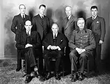 In 1939, Vanier was elevated to the position of the King's Envoy Extraordinary and Minister Plenipotentiary to France.[17] However, with the outbreak of Second World War and the Nazi occupation of France in 1940, Vanier and his wife fled to the United Kingdom and then back to Canada in 1941, where he was commissioned as commander of the military district of Quebec and began an early policy of bilingualism in the army.[8] The next year Vanier was promoted to the rank of major general and then made the Canadian Envoy Extraordinary and Minister Plenipotentiary to the governments of Belgium, Czechoslovakia, Greece, the Netherlands, Norway, Poland, and Yugoslavia, as well as the representative of the Canadian government to the Free French and later the Conseil National de la Résistance,[17] all of which were governments in exile. Throughout this time, Vanier attempted to convey to officials in Canada the seriousness of the situation in Europe, especially regarding refugees from the Nazi regime. To the frustration of the Vaniers, these efforts were met predominantly with indifference and even anger, and Vanier's letters to the prime minister at the time, William Lyon Mackenzie King, failed to induce a change in Canada's immigration policies.[7]