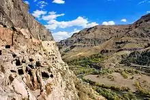 The territory of modern-day Georgia was inhabited by Homo erectus since the Paleolithic Era. The proto-Georgian tribes first appear in written history in the 12th century BC.[24] The earliest evidence of wine to date has been found in Georgia, where 8,000-year old wine jars were uncovered.[25][26] Archaeological finds and references in ancient sources also reveal elements of early political and state formations characterized by advanced metallurgy and goldsmith techniques that date back to the 7th century BC and beyond.[24] In fact, early metallurgy started in Georgia during the 6th millennium BC, associated with the Shulaveri-Shomu culture.[27]