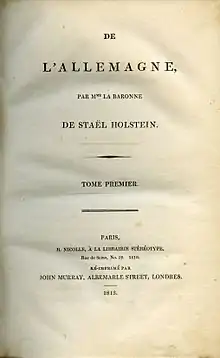 - Madame de Staël (Anne-Louise-Germaine) (1813). Germany. John Murray. pp. 1–.