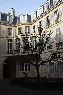 Germaine (or Minette, "kitty") was the only child of Suzanne Curchod, who hosted in Rue de la Chaussée-d'Antin one of the most popular salons of Paris[7] and prominent banker and statesman Jacques Necker, who was the Director-General of Finance under King Louis XVI of France. Mme Necker wanted her daughter educated according to the principles of Jean-Jacques Rousseau and endow her with the intellectual education and Calvinist discipline instilled in her by her pastor father.[8] On Fridays she regularly brought Germaine as a young child to sit at her feet in her salon, where the guests took pleasure in stimulating the brilliant child.[9] At the age of 13, she read Montesquieu, Shakespeare, Rousseau and Dante.[10] This exposure probably contributed to a nervous breakdown in adolescence, but the seeds of a literary vocation had been sown.