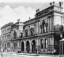 One service the German Club provided its members was a Sick Fund, which 1868 became a separate organization.[6] After twenty years of holding meetings in hotels (they rented a hall upstairs in the Hamburg Hotel[7] in Rundle Street, then the Europe Hotel, Grenfell Street (each at an intersection with Gawler Place), they had saved enough money to purchased a large allotment, part or all of 87–91 Pirie Street, and in 1878 started building their own magnificent clubhouse at 89 Pirie Street,[3] which was opened in July 1879. They then embarked on construction behind the clubhouse, of Adelaide's Albert Hall, a large concert hall named for the Prince Consort, which was officially opened on 4 October 1880. This has been described as the point at which the Club's fortunes began to nosedive. It had cost a little over £2,000, and was entirely paid for by fund-raising activities, and through every member contributing £1, which was to be repaid, interest free, out of profits.[8] The scheme backfired however: membership dropped dramatically and the focus of those remaining was on repaying the debt, to the detriment of their social and cultural program.[8]